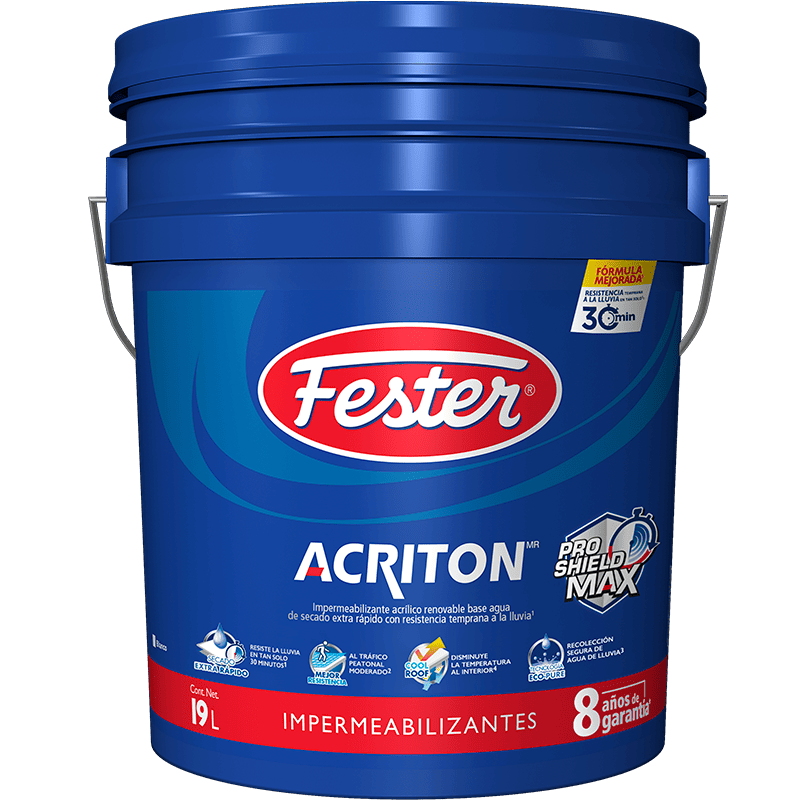 Acriton 8 años Blanco 19 Litros Fester es un impermeabilizante elastomérico de última generación que logra el mejor balance de propiedades